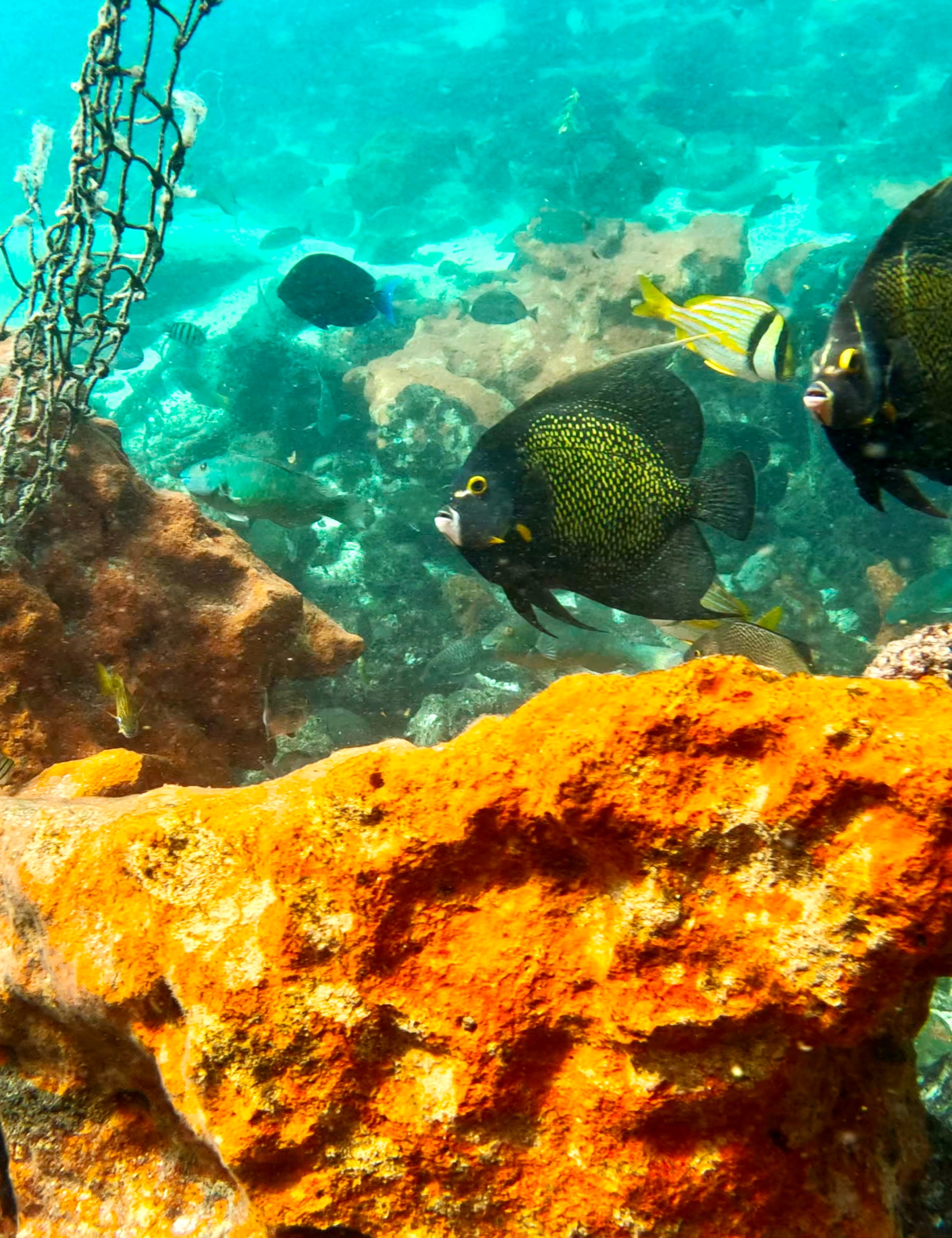 The smaller residents steal the show too – brilliant parrotfish in electric blues and greens constantly graze the coral, creating that distinctive crunching sound you'll hear underwater. Angelfish, butterflyfish, and wrasses dart between the reef structures in schools that can number in the hundreds. Keep your eyes peeled for green moray eels tucked into crevices, and don't be surprised if a curious grouper decides to follow you around for a bit. The diversity here rivals some of the best snorkeling spots in the Caribbean, and our guides know exactly where each species likes to hang out.